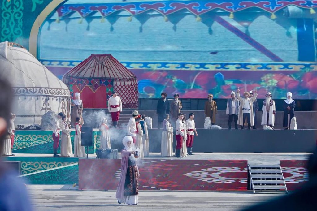 Ар бир кыймылы келишкен, кыргыздын шырдагындагы оймо-чиймелер түшүрүлгөн түркүн түстүү улуттук кийимдерди кийген бийчилердин синхрондуу кыймылдары чоң эмгекти жана жогорку даярдыкты талап кылганы көрүнүп турду. Бул массалык бийлерден сырткары, өлкөбүзгө белгилүү эстрада жылдыздары, фольклордук топтор жана театр артисттери өз өнөрлөрүн тартуулашты. Комуздун күүсү жаңырып, ырчылардын шаңдуу ырлары элдин маанайын көтөрдү.