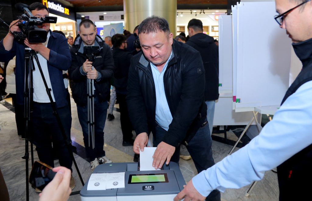 10-октябрда Бишкектеги ЦУМ дун имаратындагы участкада ɵткɵн тесттик добуш берʏʏгɵ коомдук жана саясий ишмерлер, ММК ɵкʏлдɵрʏ, жарандык активисттер жана башка шайлоочулар катышты. Алар жаңы система аркылуу добуш берʏʏ процедурасына кʏбɵ болуп, адистерге жана эксперттерге кызыккан суроолорун беришти.