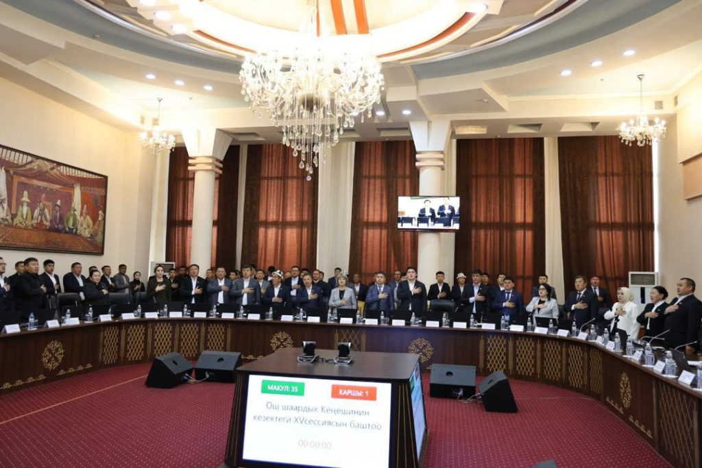 10-октябрь кʏнʏ Ош шаардык кеңешинин XV сессиясы болуп, ага Ош шаарынын биринчи вице-мэри Адилет Шаршеналы уулу, тɵрага Болот Баетов, вице-мэрлер, шаардагы мекеме-ишканалардын жетекчилери, 44 депутат катышты.