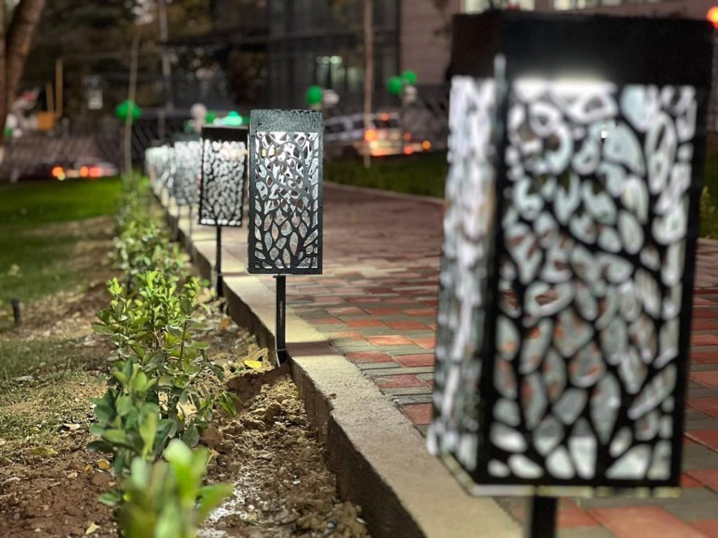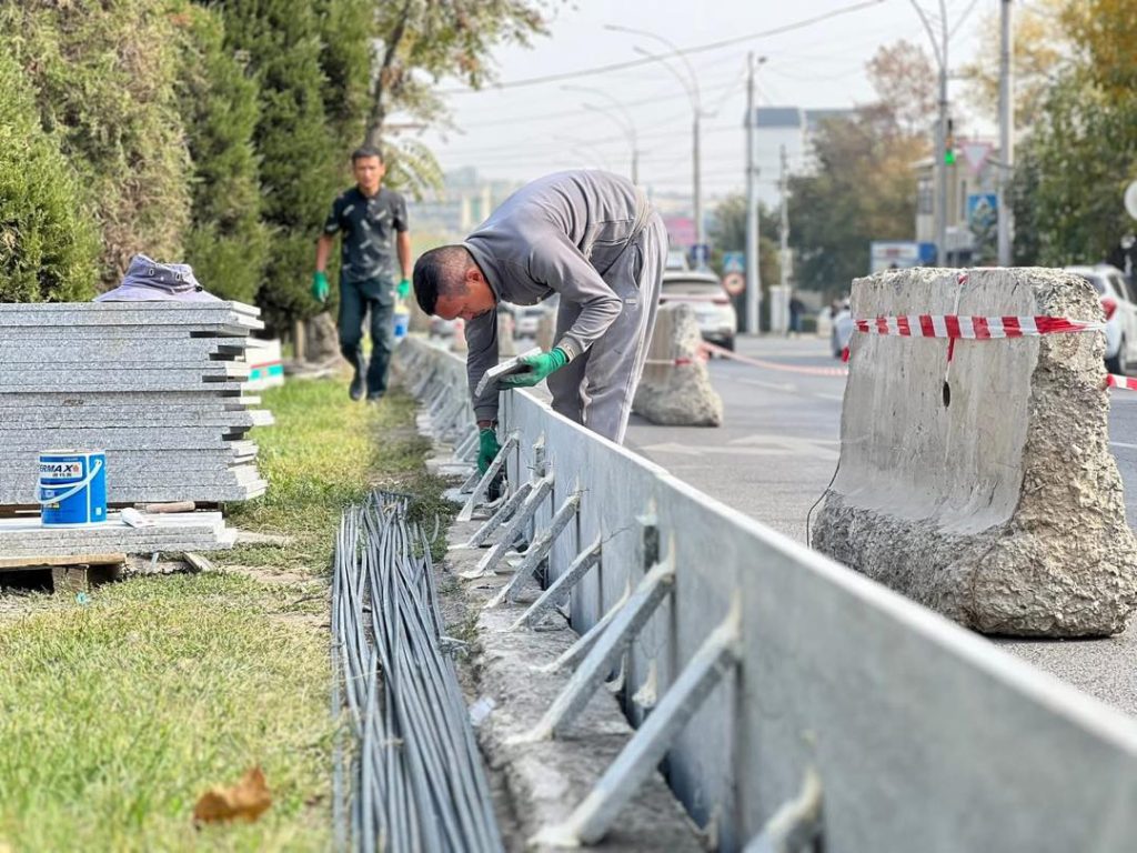 Ал эми Р. Абдыкадыров кɵчɵсʏндɵгʏ жашыл аймакта бетон тосмолор гранит таштарга алмаштырылып, шаар архитектурасы бирдиктʏʏ ɵңгɵ келтирилʏʏдɵ.