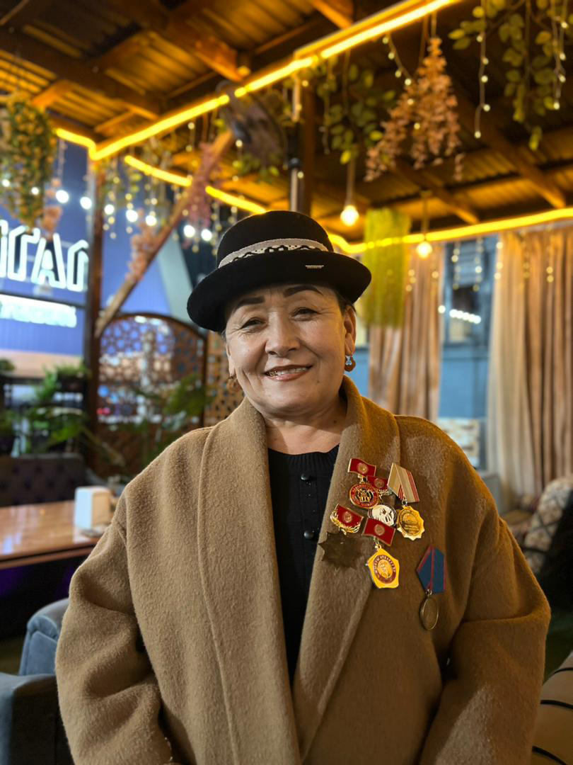 — Илгери бизди талаа иштерине кɵп чыгарышчу. Бир кʏнʏ пахта терими жʏрʏп жатканда Аскар Акаев, Нурсултан Назарбаев жана Ислам Каримов келишкен. Кийип жʏргɵн улуттук кийимимди ɵз колум менен тиккен элем. Президенттер ошол кийимди кɵрʏп, “ушул кыздын колунан чай ичсек” деп айтышыптыр. Ошондо мен аларга чай куюп берген элем. Агайларым “ушул улуу инсандар сенин колуңдан чай ичишти” деп сʏйʏнʏшкɵн. Азыр ошол окуяны эстесем, ɵзʏм да сыймыктанам.
