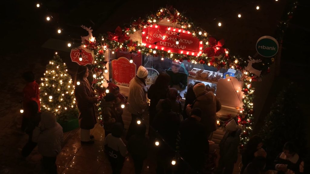 -Жаңы жылдык атмосфераны тʏзʏʏдɵ “Северное сияние” компаниясы негизги ɵнɵктɵш болду. Келишимдин негизинде компания борбордук аянтка атайын ʏйчɵлɵрдʏ орнотуп, шаардыктар ʏчʏн жылуулук тартуулаган кичи шаарча тʏздʏ. Бул ʏйчɵлɵрдɵ ысык чай, кофе, самсы, бутерброд сыяктуу тамак-аштар сунушталып, кышкы суукта эл ʏчʏн ыңгайлуу шарт тʏзʏлдʏ. Бул жайлар жɵн гана соода тʏйʏнʏ болбостон, адамдар жолугуп, эс алып, майрамдык маанайды сезе турган жылуу мейкиндикке айланды.