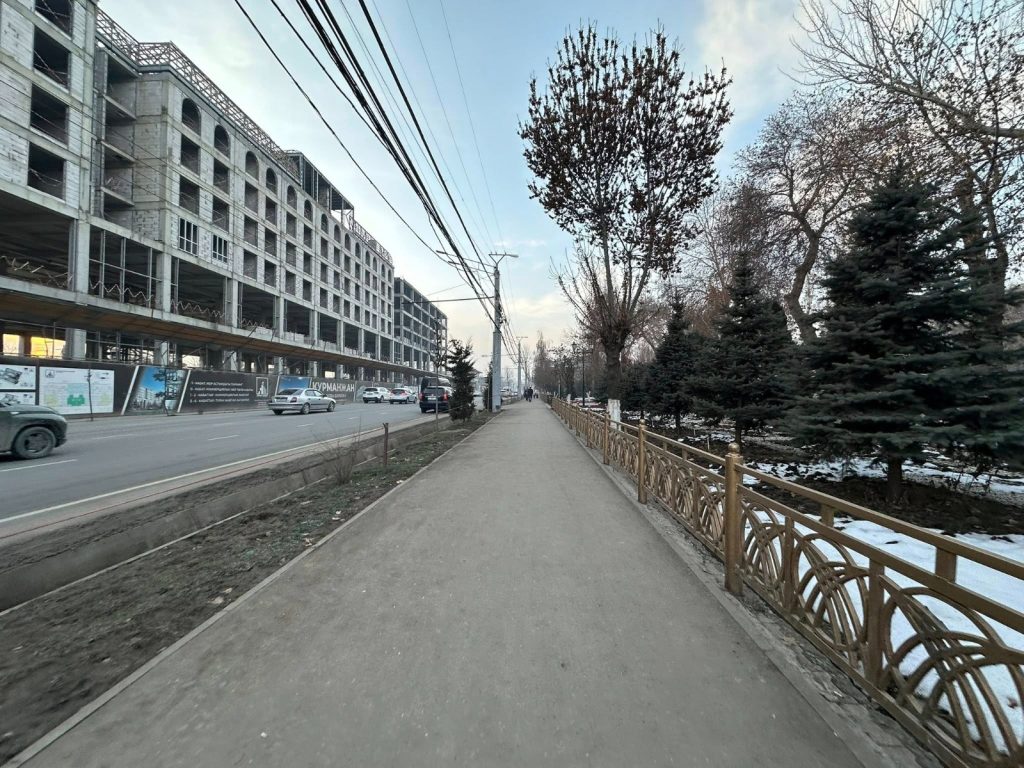 Учурда аталган кɵчɵнʏн эки тарабында тротуарларды жана жашыл аймактарды куруу иштери жʏргʏзʏлʏʏдɵ. Анын алкагында тротуарлардын эски катмары алынып, жер тилкелери даярдалууда.
