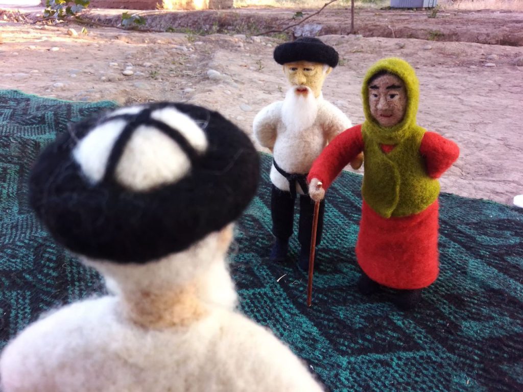-Мен кɵбʏнчɵ аксакалдардын образын жасаганды жакшы кɵрɵм. Бул образдар мага чоң атамды, айылдагы улуу муундагы адамдарды эстетет. Мурда айылда аксакалдар кɵп болчу, алардын жʏзʏ, сʏйлɵгɵнʏ, жʏрʏм-туруму ɵзгɵчɵ бир жылуулукту тартуулачу. Азыр ошол кɵрʏнʏштɵр акырындап азайып бара жаткандай сезилет. Ошол жоголуп бараткан эстетиканы мен куурчактар аркылуу сактап калгым келет. Куурчактарымдын кɵбʏ 15 сантиметрдин тегерегинде болот. Алгачкы жасаган куурчагым 10 сантиметрдей эле, тилекке каршы ал азыр жок, белекке берип жибергем.
